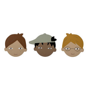 Simson Hook från Bloomingville MINI är målade med tre olika pojkeansikten. Använd dem tillsammans eller separat på väggen eller som handtag på ditt favoritskåp. Kommer i en liten låda, perfekt som present.