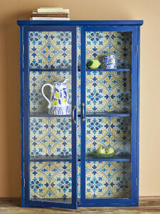 Hazem-skåpet från Creative Collection är en karaktärsfull förvaringslösning. Skåpet har en elegant, sliten finish som ger en vintagelook. Baksidan av skåpet är prydd med dekorativt papperstryck inspirerat av portugisiska kakel, vilket ger en touch av medelhavsatmosfär. Använd skåpet för att förvara dina favoritartiklar samtidigt som det fungerar som ett iögonfallande designuttryck i ditt hem.