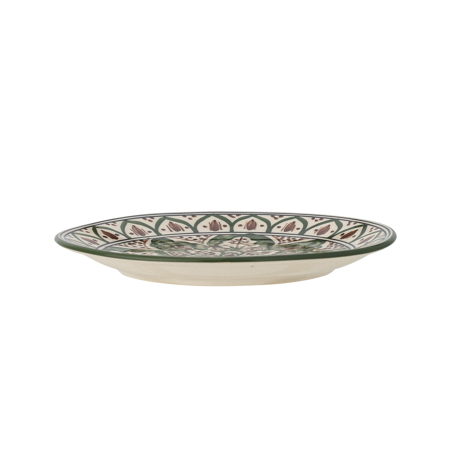 Karlie Plate från Creative Collection utstrålar en jordnära värme, handmålad med gröna och bruna nyanser inspirerade av Medelhavets landskap och estetik. En hyllning till de traditionella mönster som har prydt keramik i generationer. En dekorativ lunchtallrik. Varje tallrik kommer att vara unik på grund av glasyrens karaktär och den handgjorda tekniken och små variationer kan förekomma.
